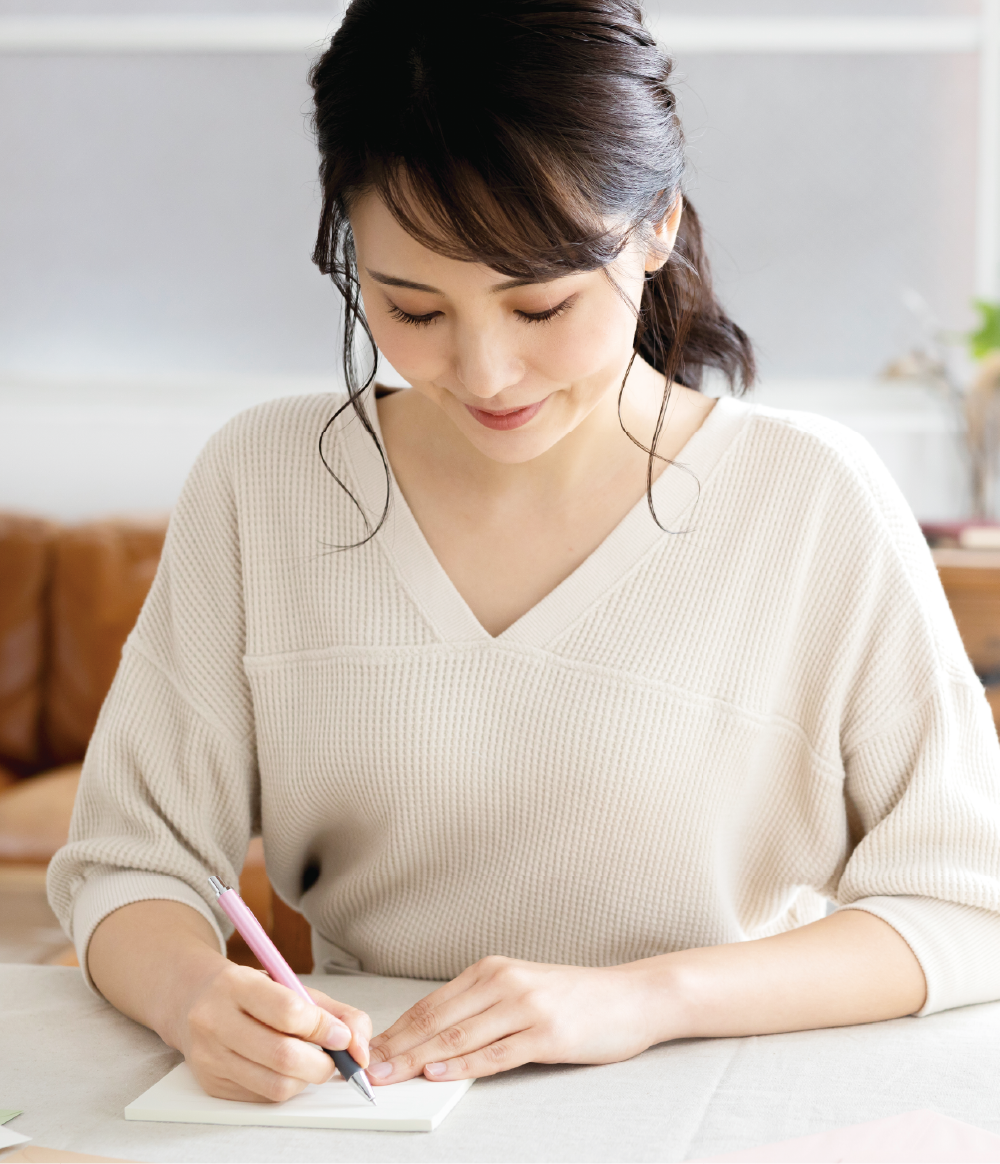 文字の種類ごとに大きさを揃えて書くと、読みやすく整って見えます。漢字は大きく、ひらがなは小さく、カタカナはさらに小さく、を意識して。