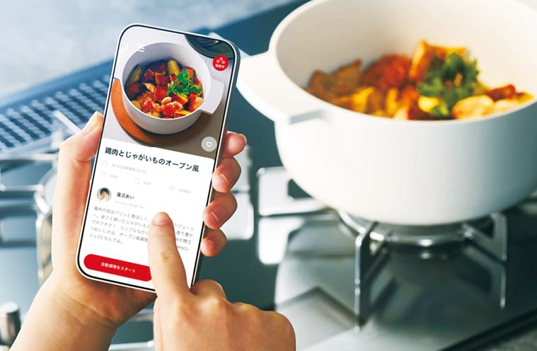 アプリで献立を選び、下ごしらえをしたら、点火するだけでオート調理がスタート。献立決めから調理まで、おまかせできます。