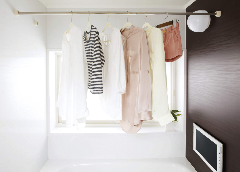 天気が悪かったり、部屋干しできる場所が限られたりする際に頼れる浴室暖房乾燥機。お風呂場に干すのでリビングなど他の部屋のスペースを取らず、天気に左右されることがありません。ガス式であれば、乾燥能力が高く電気式に比べてスピーディーです。